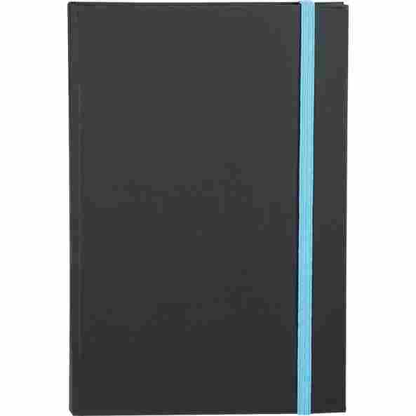 The 5.5" x 8.5" FSC® Mix Color Pop Bound Journal features a hard cover with a soft matte black cover to highlight the most subtle or colorful logos. This custom Journal includes 96 sheets of FSC® Mix cream lined paper with bright colored edges and corresponding color elastic closure.