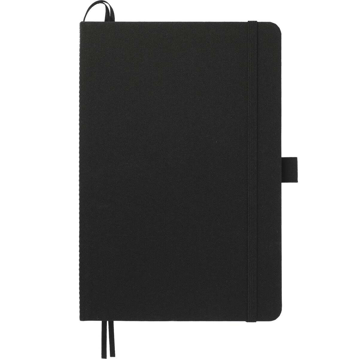 The 5.5" x 8.5" FSC® Recycled Marine Bound Journal features a uniquely crafted cover material, Repreve®, which is made with recycled ocean plastic and waste collected from coastlines of developing countries. Features color-matching elastic closure, pen loop and ribbon page marker. Includes 96 sheets of white lined FSC® recycled paper. Through a partnership with 1% For The Planet, one percent of sales of all EcoSmart® products are donated to environmental nonprofits.