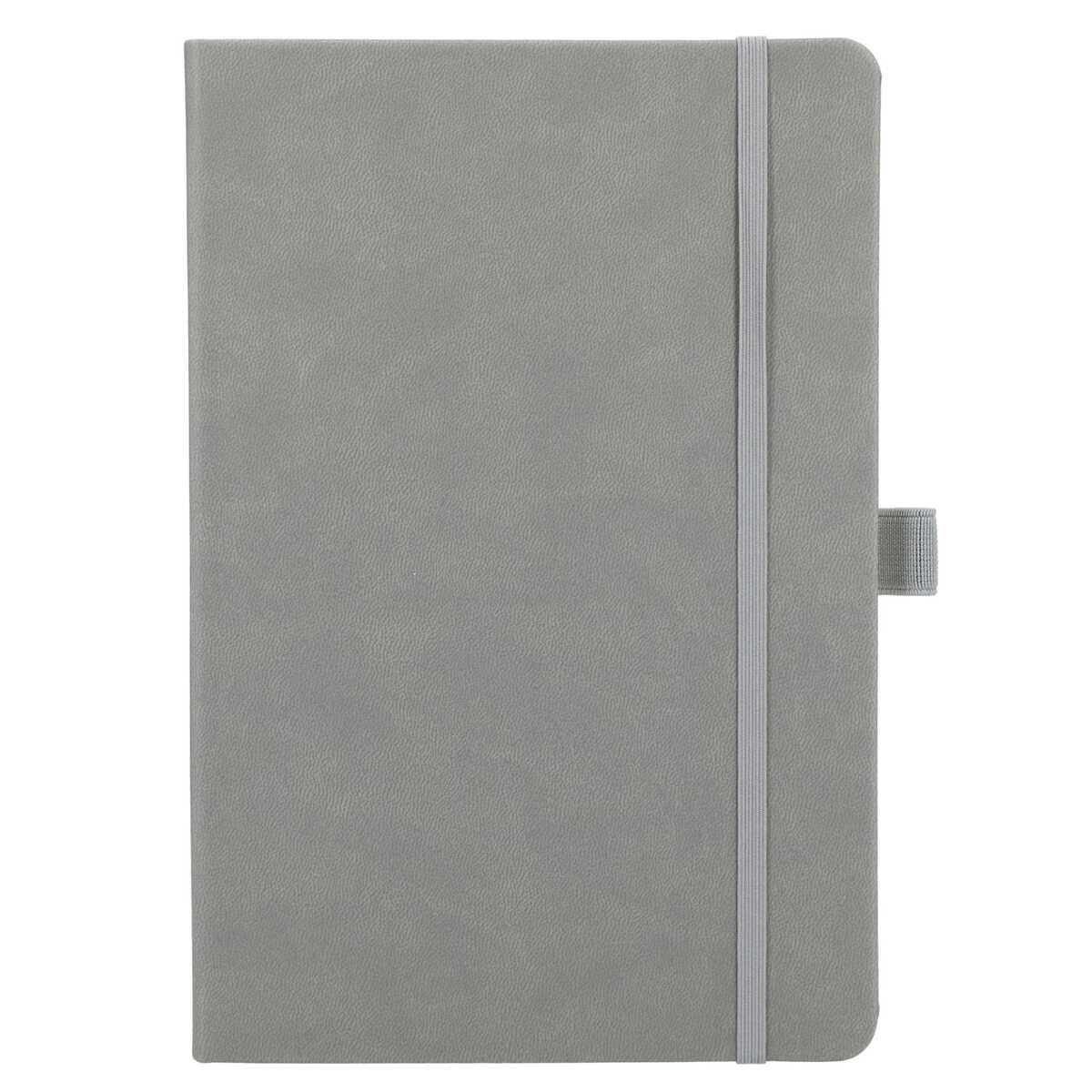 The 5.5" x 8.5” Mano Recycled Hard Bound Journal features a recycled polyurethane cover and 80 pages of recycled cream lined paper. Includes document pocket, color matching ribbon page marker, elastic band and pen loop.