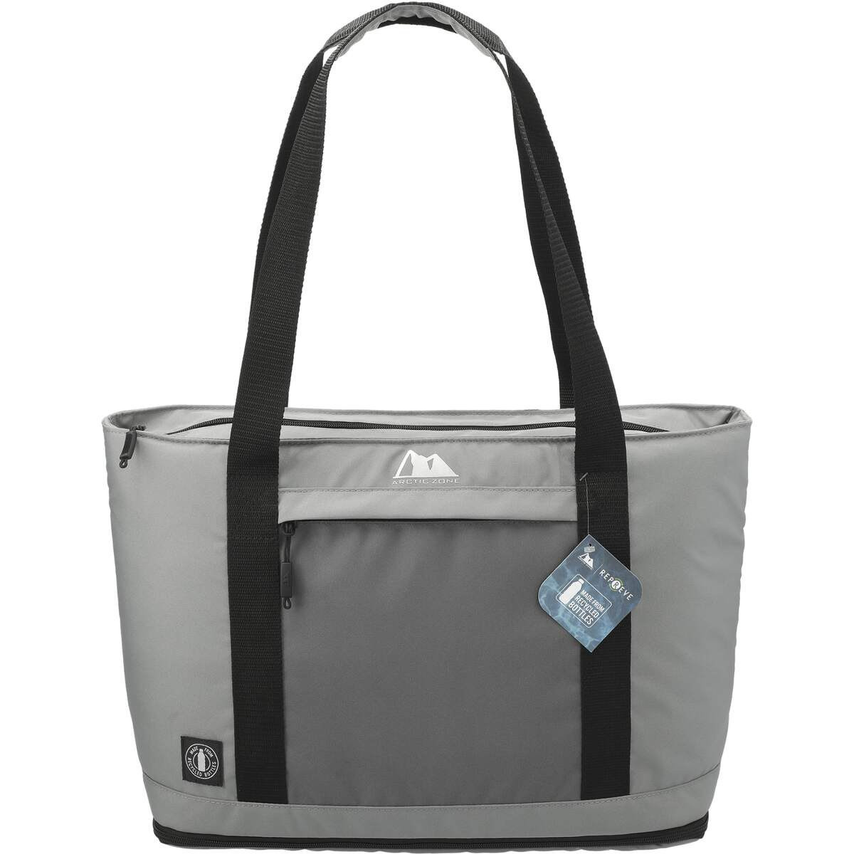 The Arctic Zone® Repreve® 25-50 Can Expandable RPET Cooler is a great tote-style cooler that expands to hold up to 50 cans! Perfect for all your needs and easy to carry with the dual straps. This features a zippered front pocket, perfect for utensils and other travel needs. The interior of the lunch bag features high-density thermal insulation and an Ultra Safe® leakproof lining, and the main body is made from REPREVE® RPET, the world’s leading recycled fiber, making it extra eco-friendly.