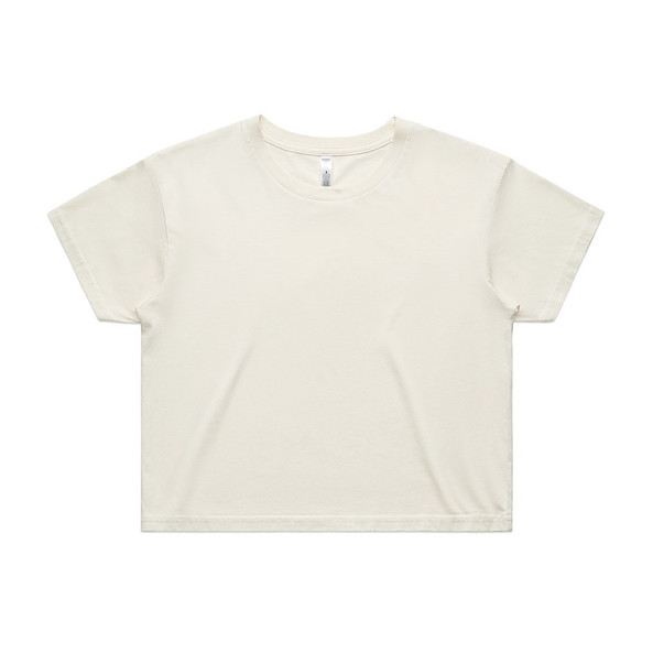 - Short body, dropped shoulders, neck ribbing, side seamed, shoulder to shoulder tape, double needle hems