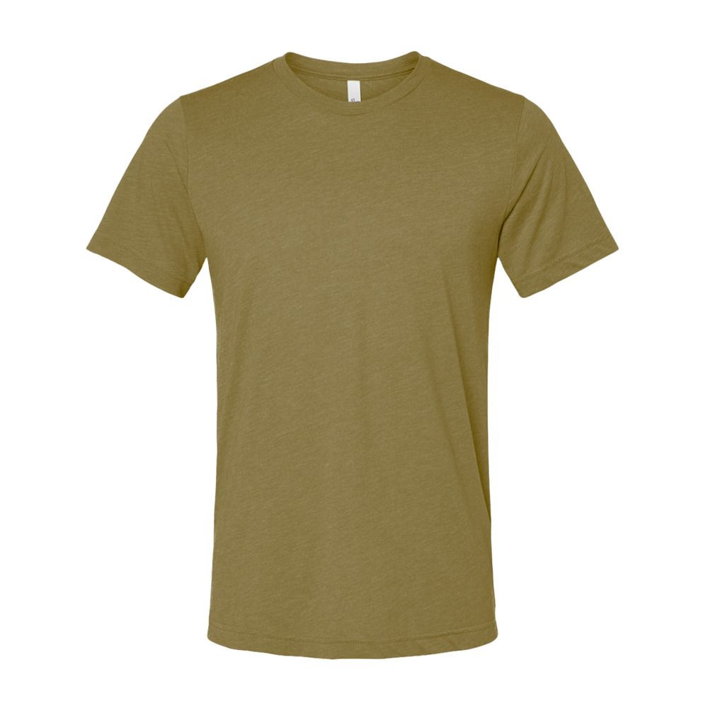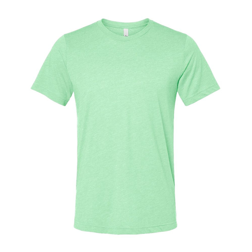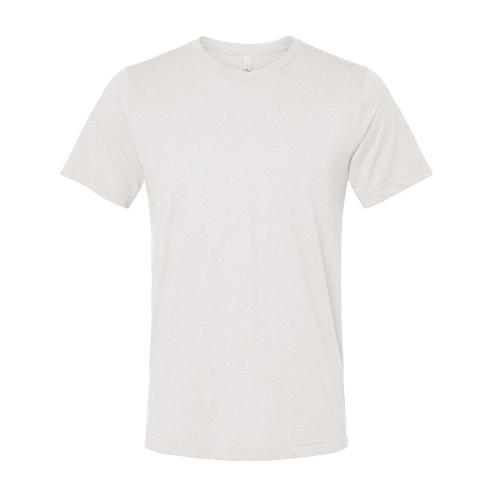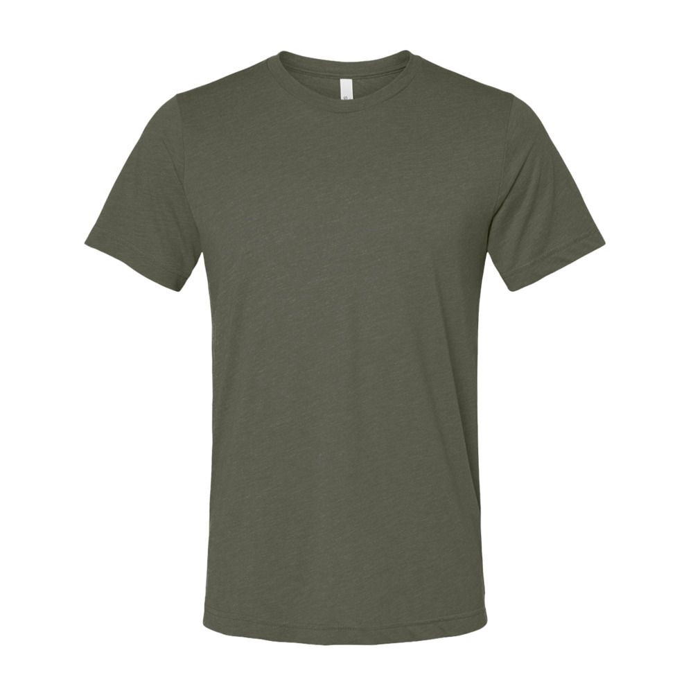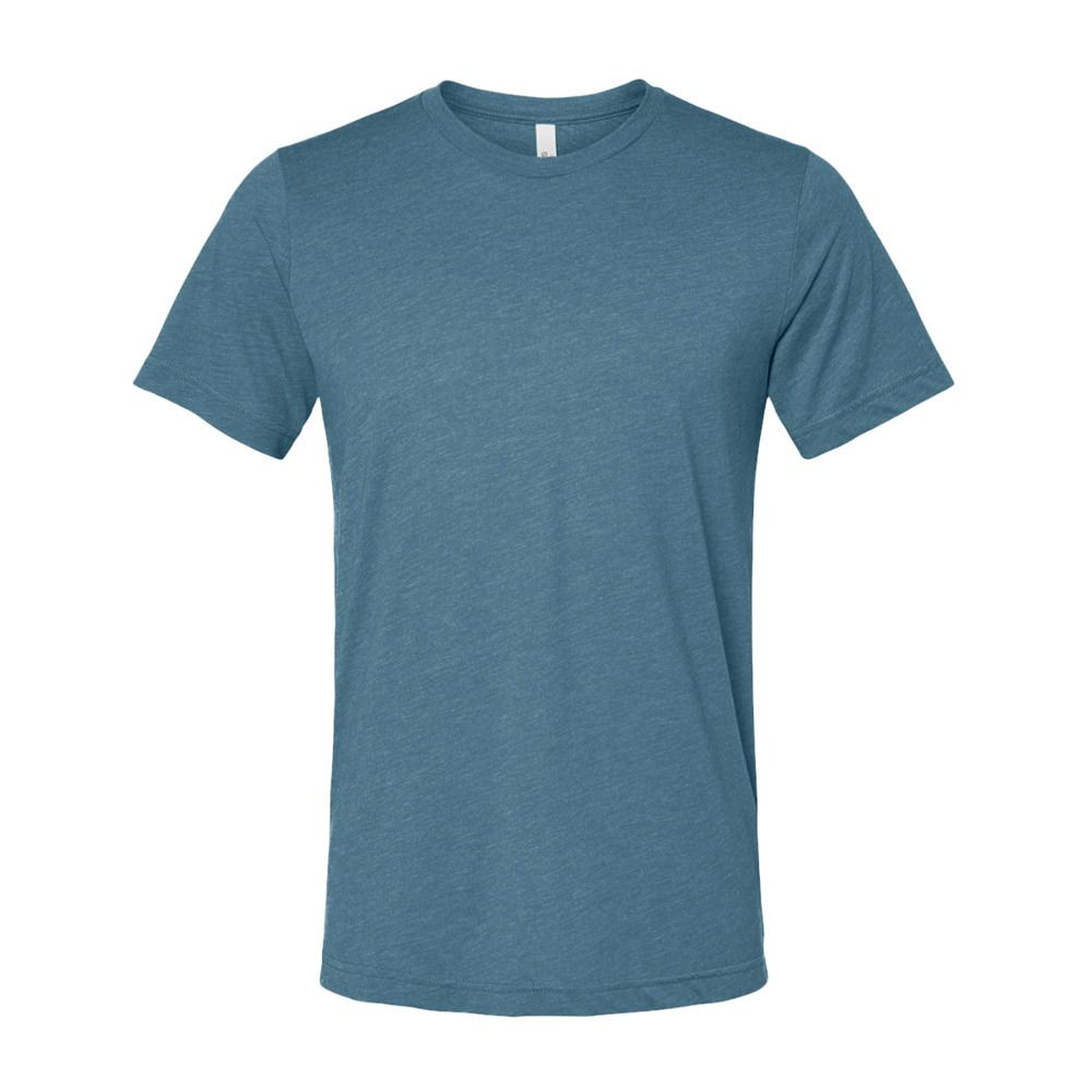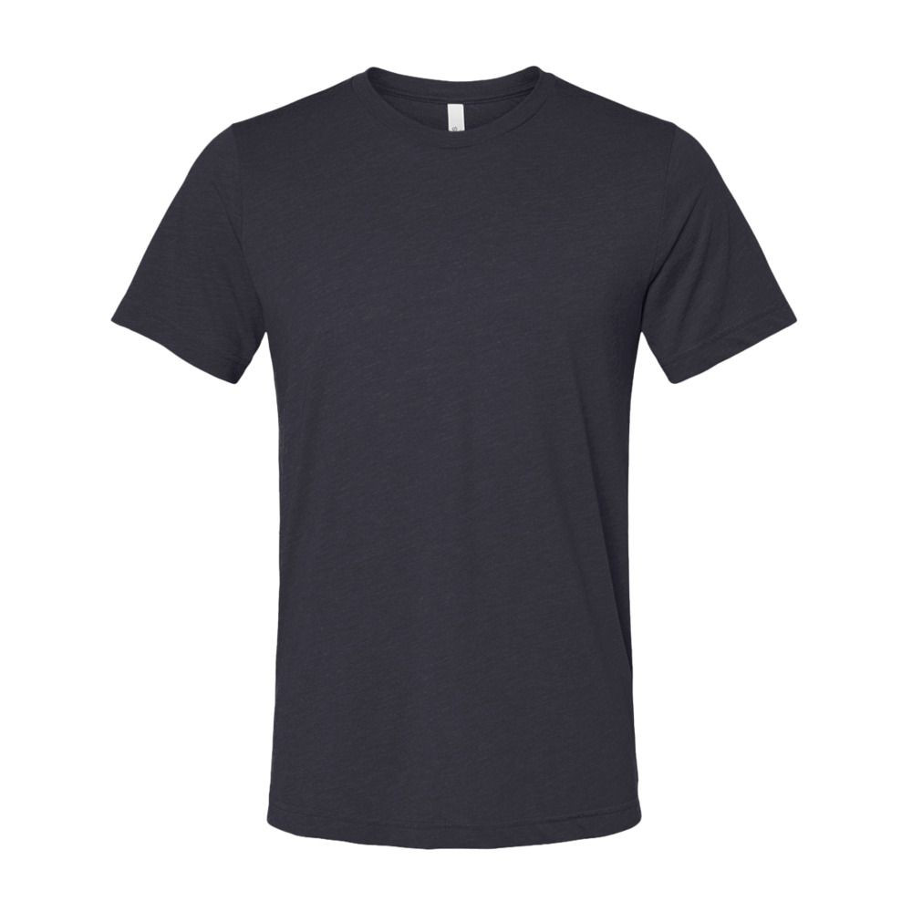-Black Heather Triblend: 70% combed ring-spun cotton, 15% polyester, 15% rayon