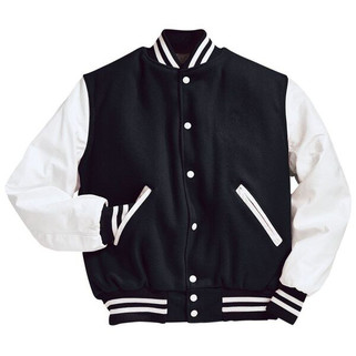 Classic Melton Wool Varsity Jacket with Vinyl Sleeves
