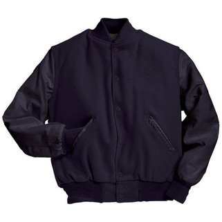 Classic Melton Wool Varsity Jacket with Vinyl Sleeves