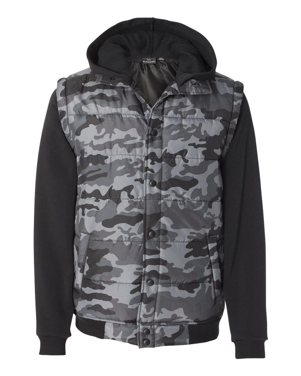 Burnside 8701 - Green Camo/ Black - Nylon Vest with Fleece Sleeves