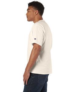100% cotton; Silver Gray is 99% cotton, 1% polyester; Oxford Gray is 90% cotton, 10% polyester; 1" bound ribbed crewneck; Deep armholes; Double-needle sleeves and bottom hem; "C" logo on left sleeve