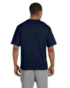 100% cotton; Silver Gray is 99% cotton, 1% polyester; Oxford Gray is 90% cotton, 10% polyester; 1" bound ribbed crewneck; Deep armholes; Double-needle sleeves and bottom hem; "C" logo on left sleeve