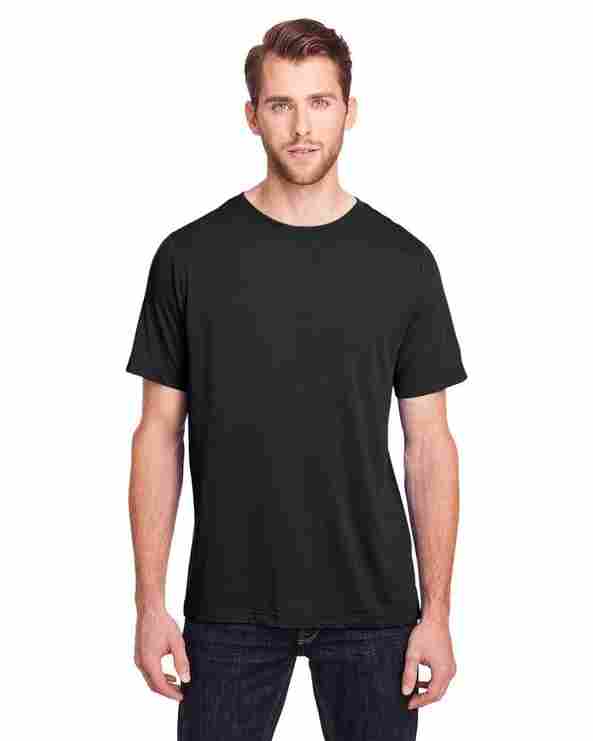 4.5 oz/yd2 / 160 gsm, 100% polyester jersey; Moisture-wicking and antimicrobial properties; ChromaSoft technology combines the colorfastness of cationic dyes with soft cotton-feel performance; Tear-away label; Active fit