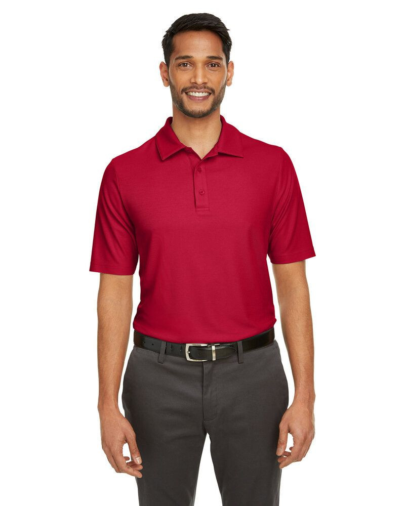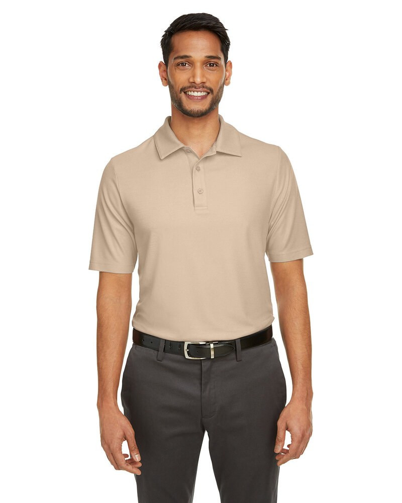 6 oz./yd2 / 210 gsm, 100% polyester pique; ChromaSoft™ technology combines the colorfastness of cationic dyes with soft cotton-feel performance; Moisture-wicking and antimicrobial performance; Three-button placket with self fabric collar and integrated collar stays; Dyed-to-match buttons; Side vents; Tear away label