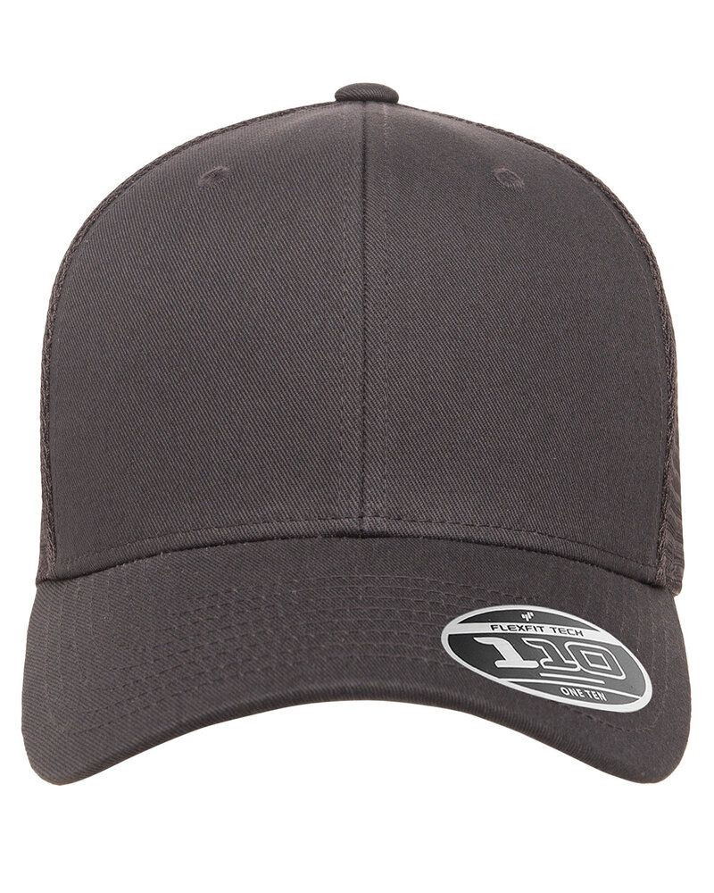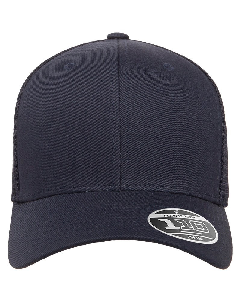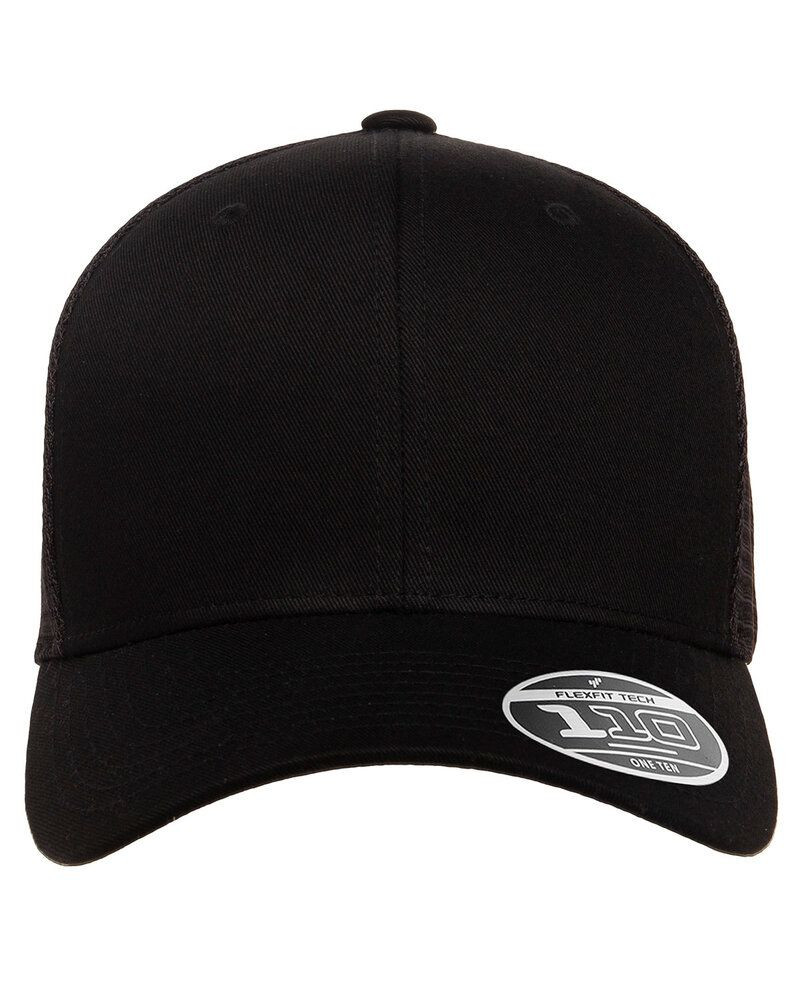 56% polyester, 44% cotton; adjustable + Flexfit® tech = Flexfit 110® cap; mesh cap for utlimate comfort and ventilation; premium Flexfit 110® fabric sweatband; 6-panel, mid profile, structured; plastic snapback closure; permacurv® visor; silver undervisor, 8-row stitching on visor