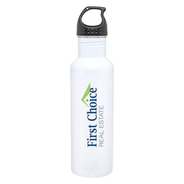 Durable 18/8 stainless steel water bottle. Threaded easy-carry lid.