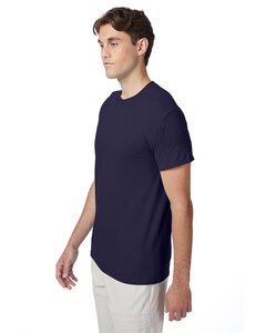 4.5 oz., 60% recycled polyester, 30% grown ringspun cotton, 10% rayon; Recycled polyester from plastic water bottles; Made with sustainably sourced USA grown cotton; 40+ UPF Rating; Modern fit; 1x1 ribbed, lay-slat collar; Self-fabric neck tape for comfort; Clean Canvas Technology for superior printability; Tag-free neck label transitioning to tear-away label. INVENTORY MAY BE MIXED; “A” list status from CDP (Carbon Disclosure Project); Energy Star Partner of the Year (12 consecutive years); Every piece of Hanes apparel purchased from our company qualifies for Hanes4Education