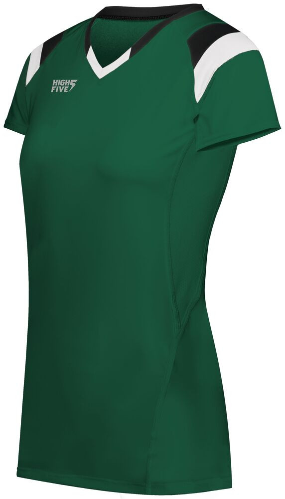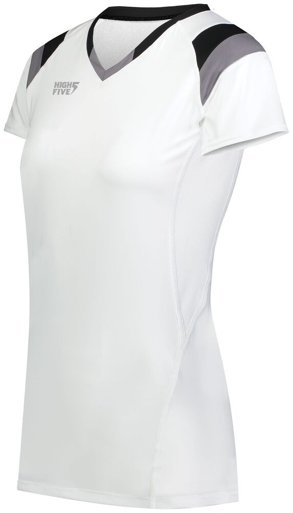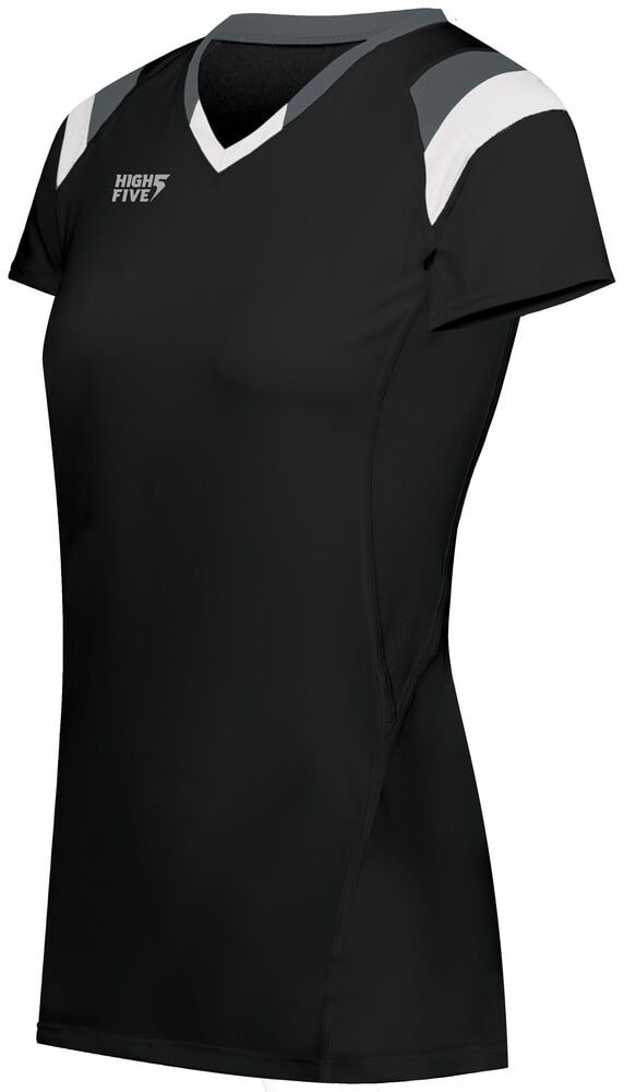 Serve like you own the ball in the Girls TruHit Tri Short Sleeve Jersey from High Five. This volleyball jersey features color secure® technology that helps prevent dye migration and strategically placed seams for maximum mobility, making the winning serve yours for the taking!