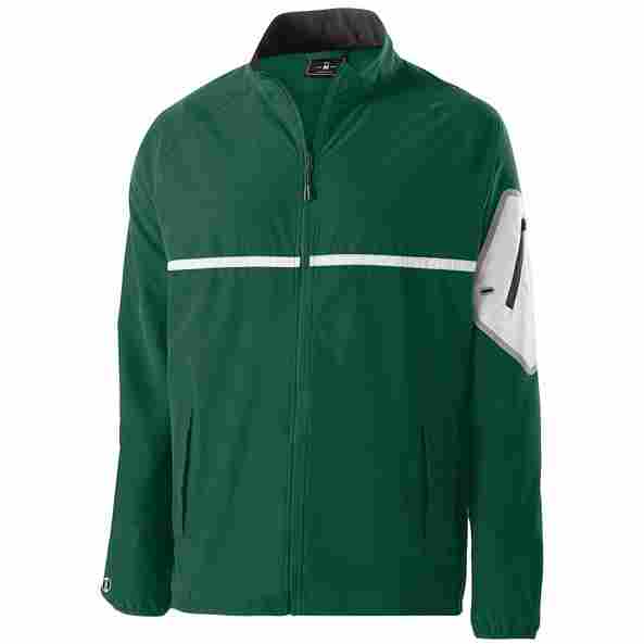 Contrast color sleeve pocket with silver media port and reflective metallic silicone welded zipper