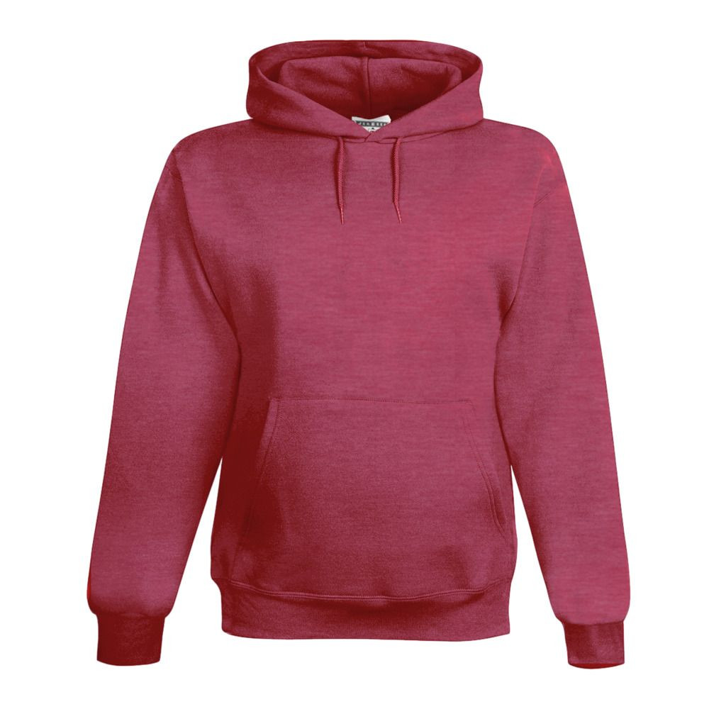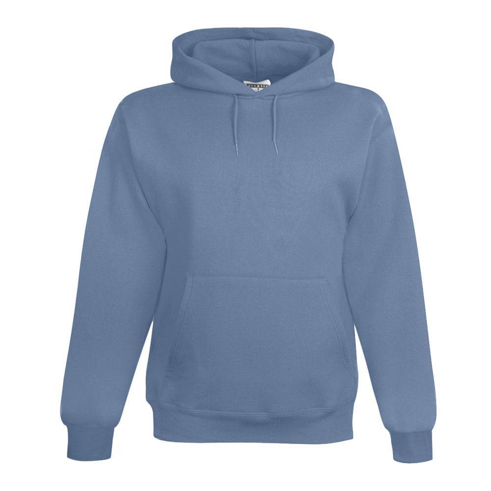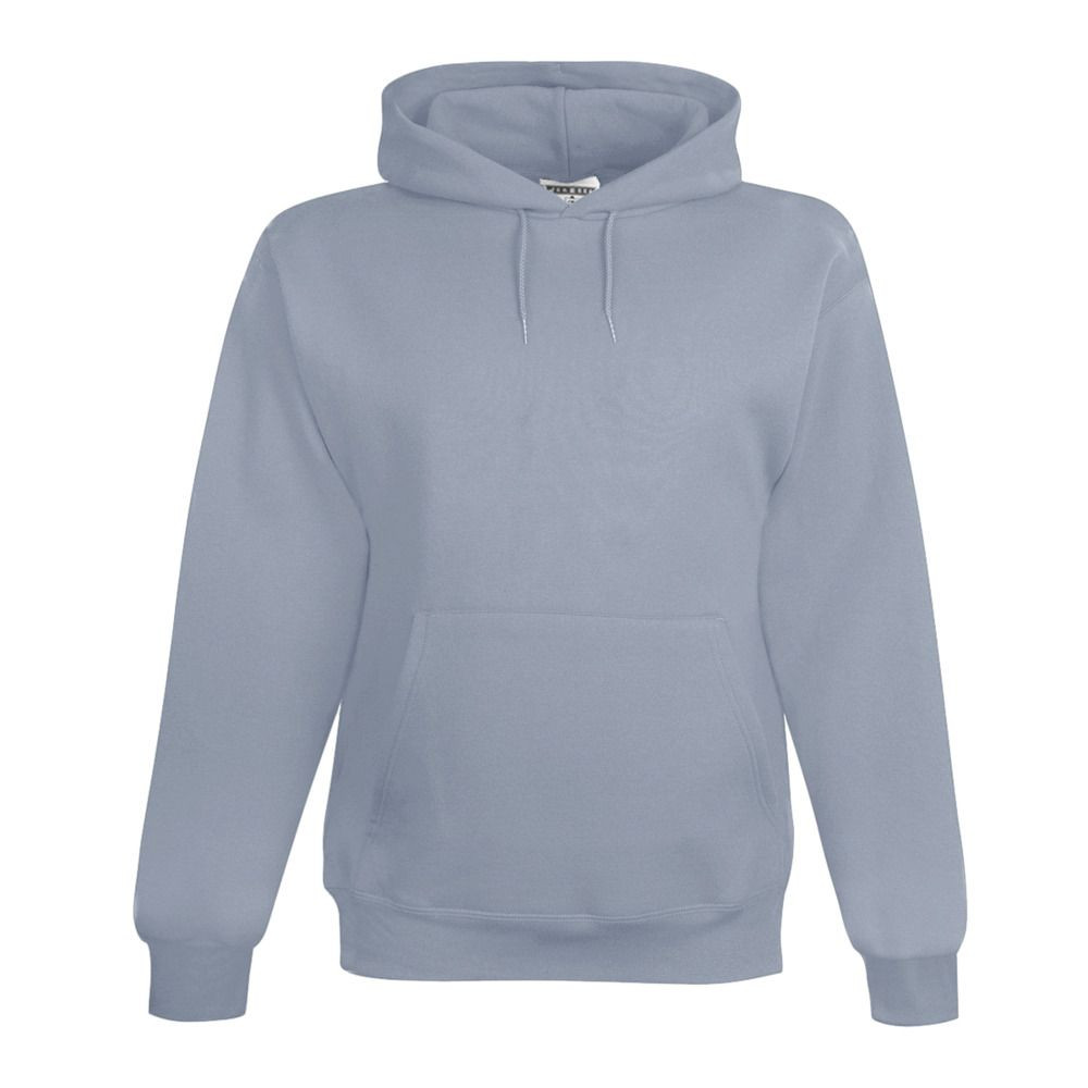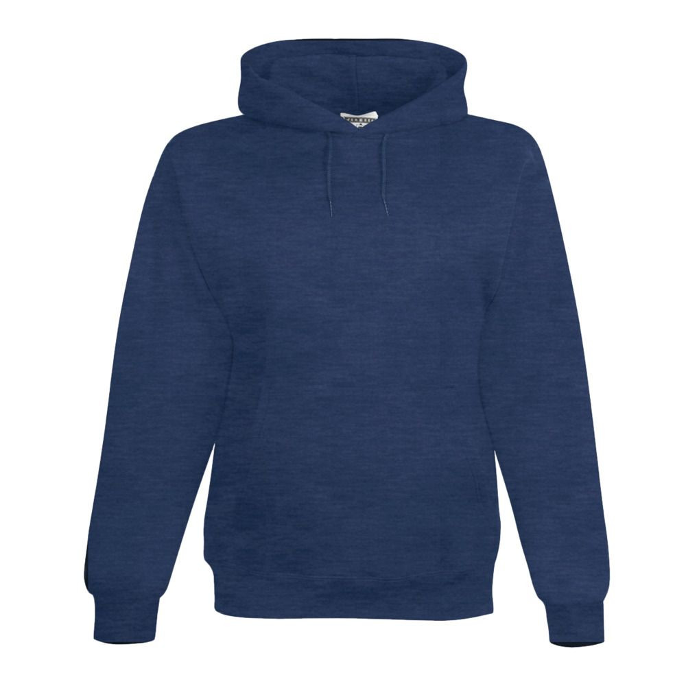 The JERZEES 996MR is hooded sweatshirt made of a 50/50 blend of cotton and polyester. It features double-needle stitched at stress points, a front pouch pocket, a two-ply hood with grommets and drawstring, concealed seams on cufs and a seamless body with set-in sleeves.