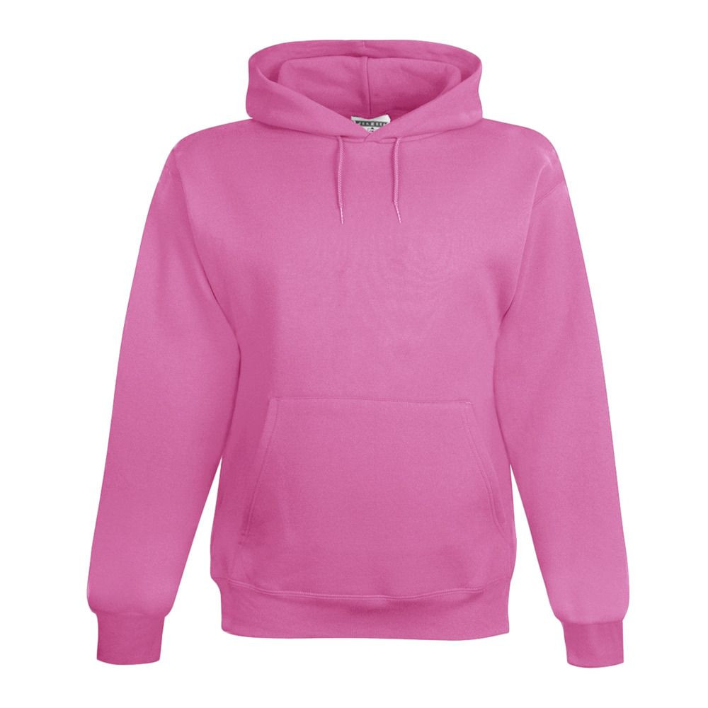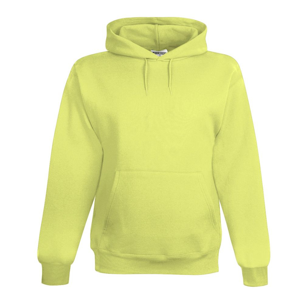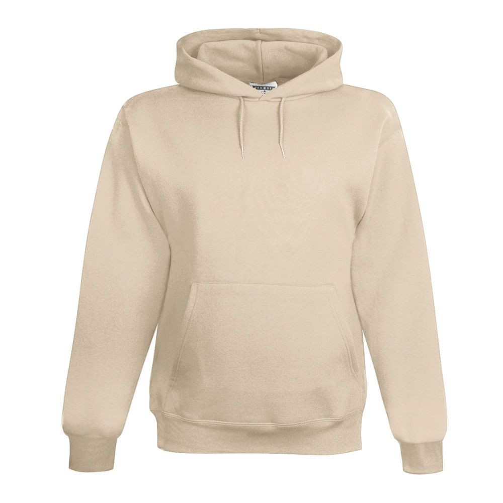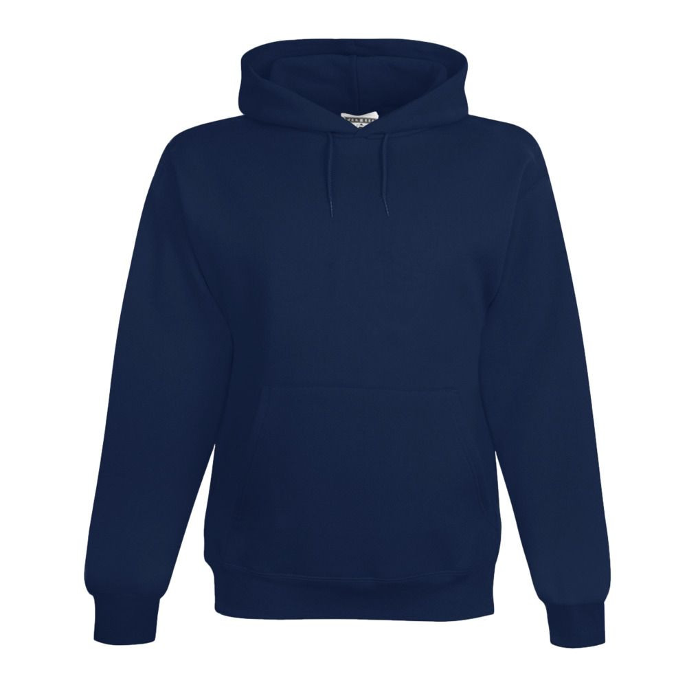 The JERZEES 996MR is hooded sweatshirt made of a 50/50 blend of cotton and polyester. It features double-needle stitched at stress points, a front pouch pocket, a two-ply hood with grommets and drawstring, concealed seams on cufs and a seamless body with set-in sleeves.