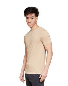 5.6 oz., 100% combed ringspun cotton; 20 singles; Under 5% shrinkage; Double-needle topstitch at sleeve,bottom hem, shoulders and armhole; Shoulder-to-shoulder tape; Side-seamed; Super soft hand-feel and retail-ready