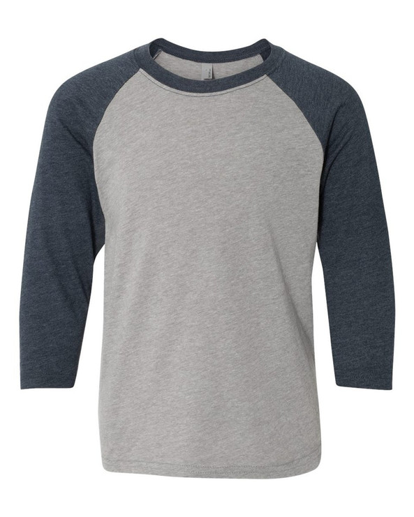 Next Level 3352 - Black Sleeves/ Dark Heather Grey Body - Youth CVC Three-Quarter Sleeve Raglan T-Shirt