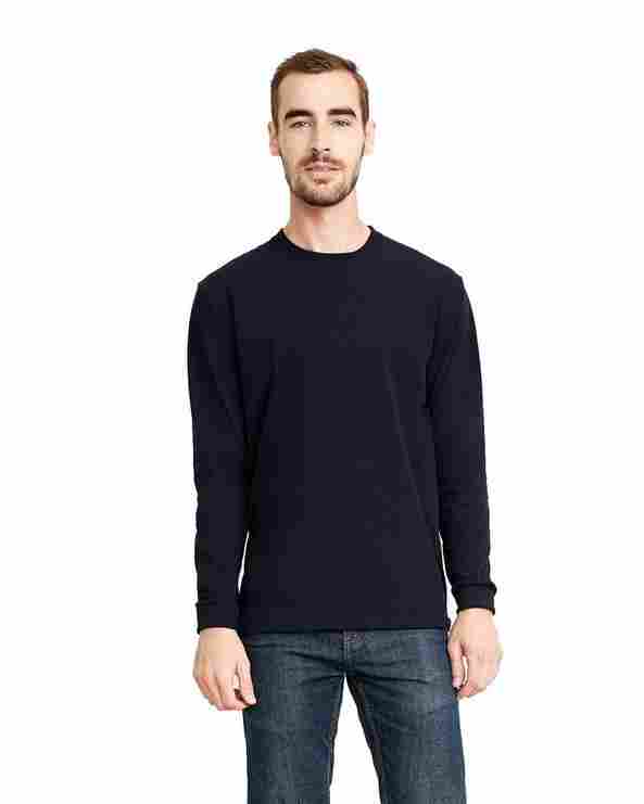 7.2 oz./lin. yd., 60% combed ring-spun cotton/40% polyester sueded jersey; 32 singles; Fabric laundered for reduced shrinkage; 1x1 sueded baby rib-knit set-in collar and cuffs; Satin label;