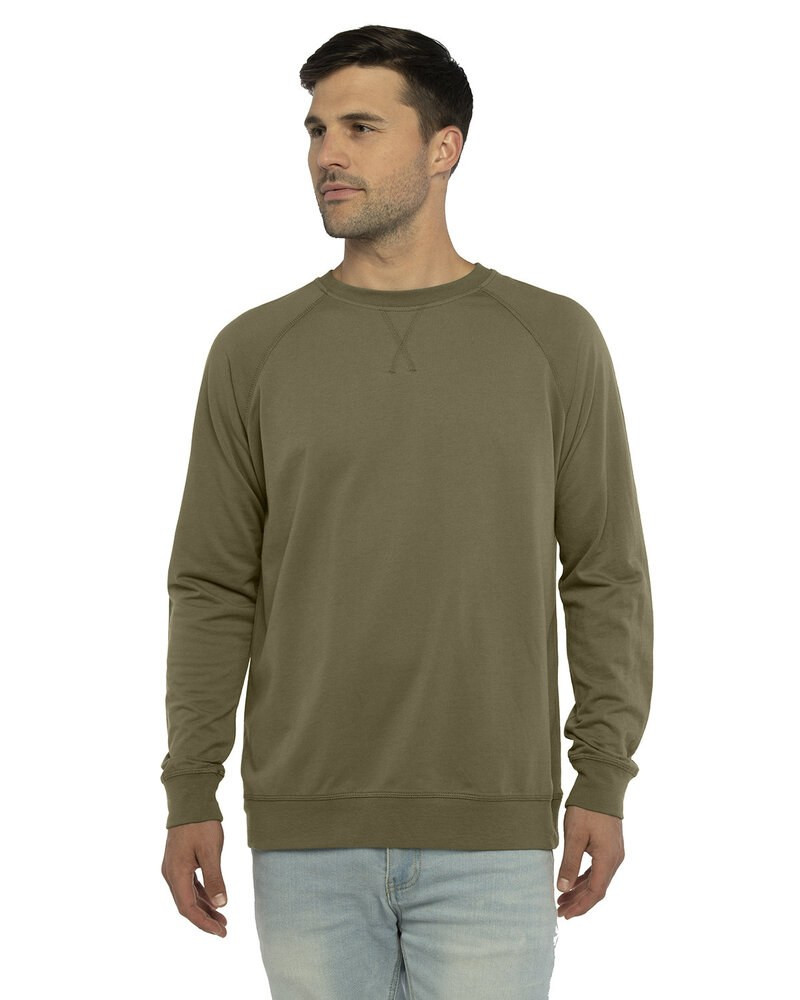 5.3 oz., 30 singles; 60% combed ringspun cotton, 40% polyester French Terry fleece; 1x1 ribbed collar, cuffs and waistband; Self 3/8" back neck binding; Raglan sleeves; Side seam; Tear away label; Regular fit; Comfortable crew with French Terry body inspired by surf and skate culture; Part of the Beach Fleece collection, keep it casual cool with laid-back apparel