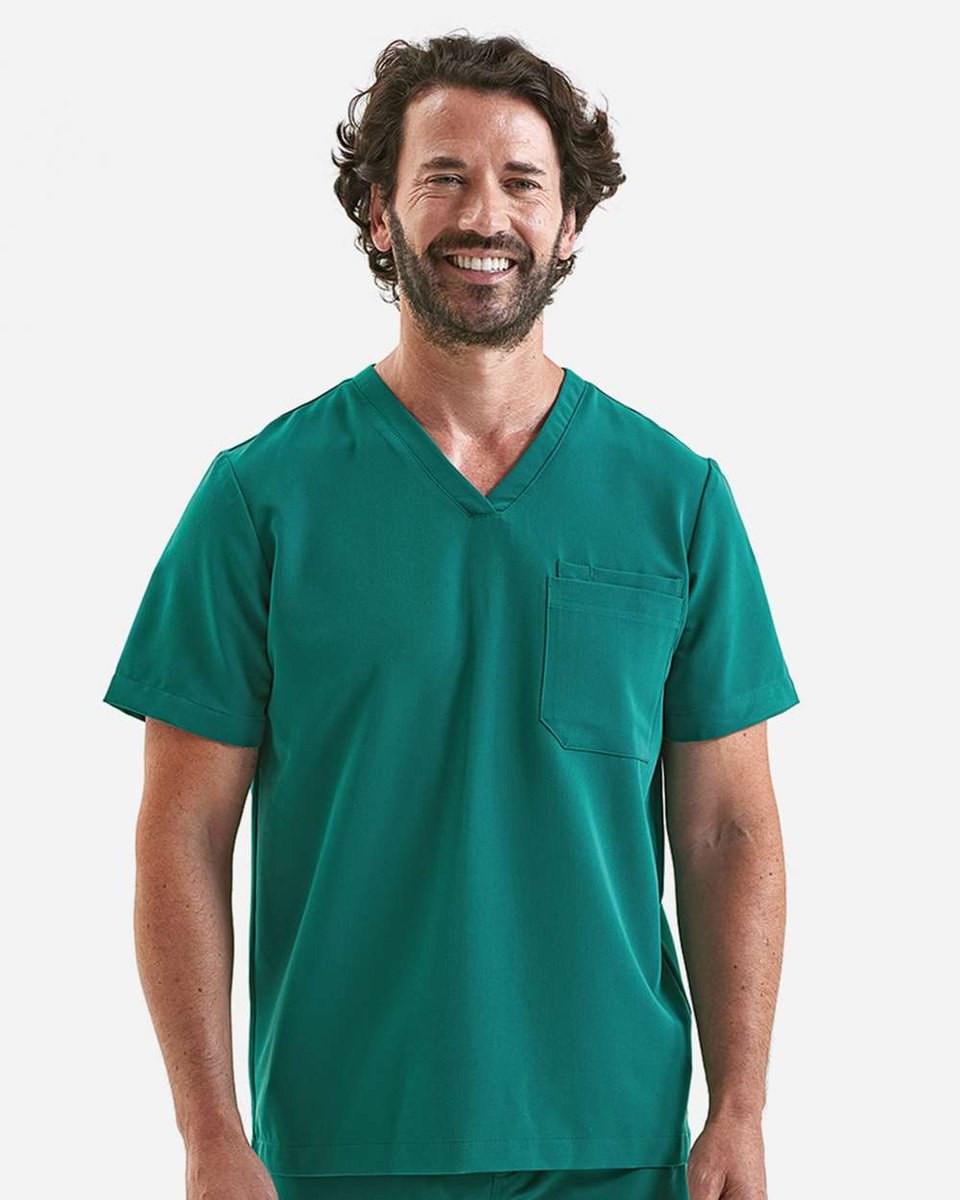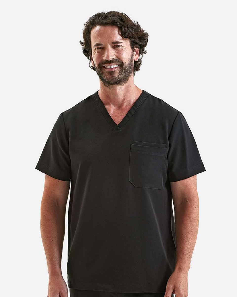 - V-neck style with left chest pocket with combined mobile and pen pocket