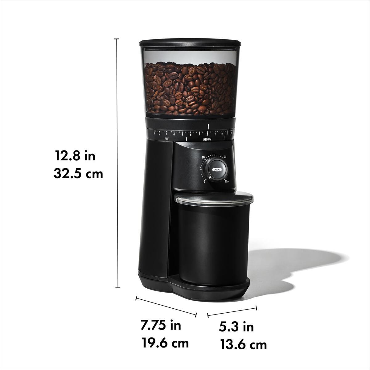 Help your coffee beans unlock their full potential. The design is simple, so nothing stands between you and your first cup. Just add beans and choose from 15 grind size settings—from fine for espresso to coarse for French press—then turn the dial to select grinding time and push to start. Stainless steel conical burrs create uniform grounds, for gold-cup flavor, and the one-touch timer keeps your last setting, so you don’t have to reset it every time. The Grinder holds up to ¾ lb (12 oz) of coffee beans in a UV-blocking hopper so your coffee tastes fresh. Hand wash