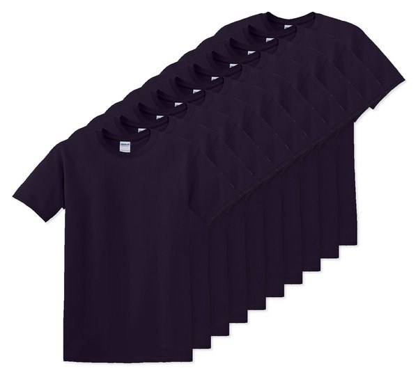 -Sunset, Safety Pink, Russet, Neon (Green, Blue), Midnight, Lilac, Blackberry, Tweed, Safety Green, S. Orange, Dark Heather, Graphite Heather, and Heather (Military Green, Radiant Orchid, Red, Sapphire) are 50% cotton, 50% polyester