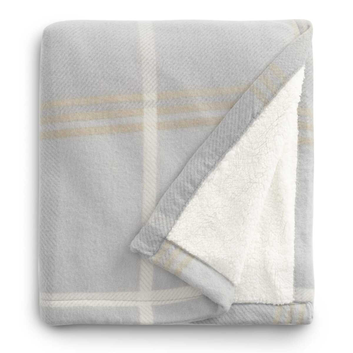 This classic plaid blanket has polar fleece on one side and soft sherpa on the other. Snuggling up in this blanket will keep you extra warm on the chilliest winter nights. Free run charges for embroidery up to 10,000 stitches. The open dimensions are 50" x 60" and folded dimensions are 15" x 12". This blanket is spot clean only.