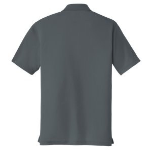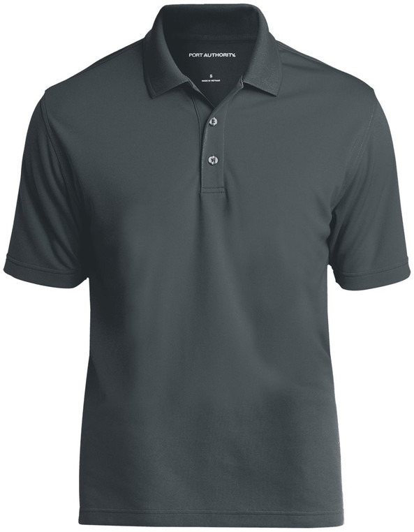 Flat knit collar; 3-button placket with pearlized, dyed-to-match buttons