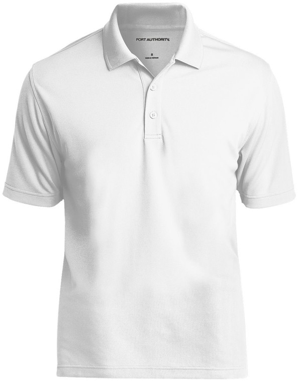 Flat knit collar; 3-button placket with pearlized, dyed-to-match buttons