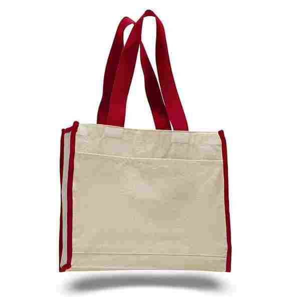 Q-Tees Q1100 - Red - Canvas Gusset Tote Bag with Colored Handles