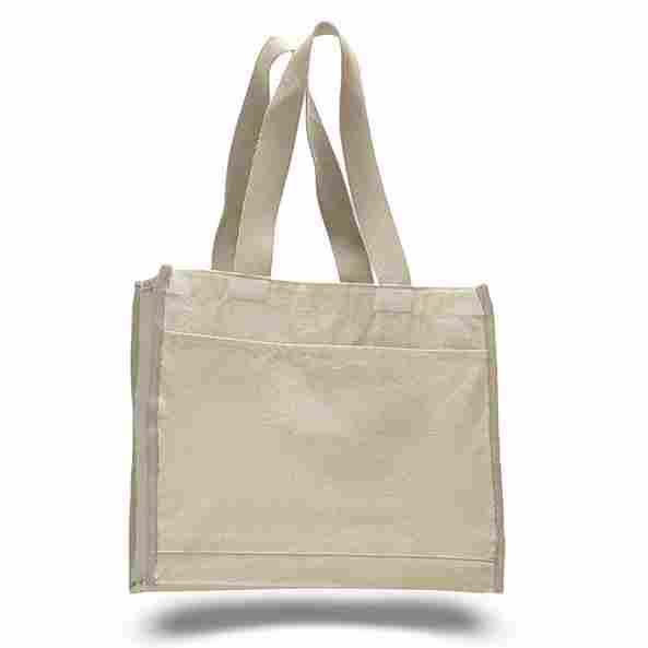 Q-Tees Q1100 - Natural - Canvas Gusset Tote Bag with Colored Handles