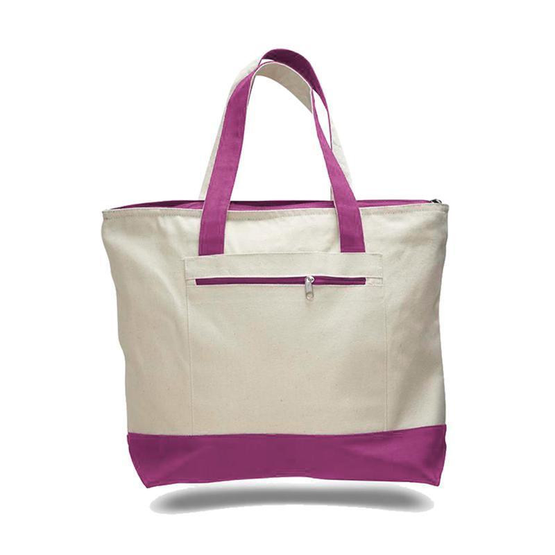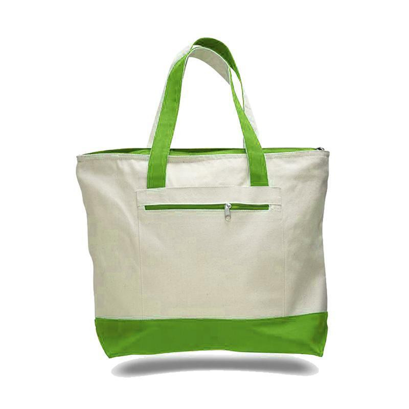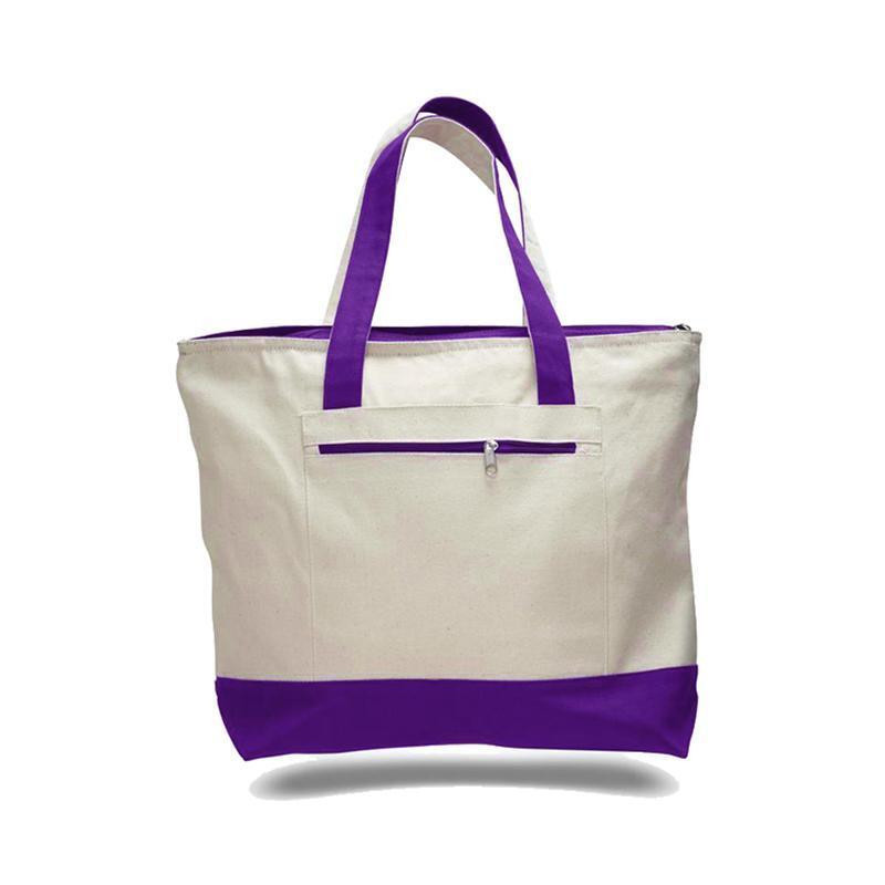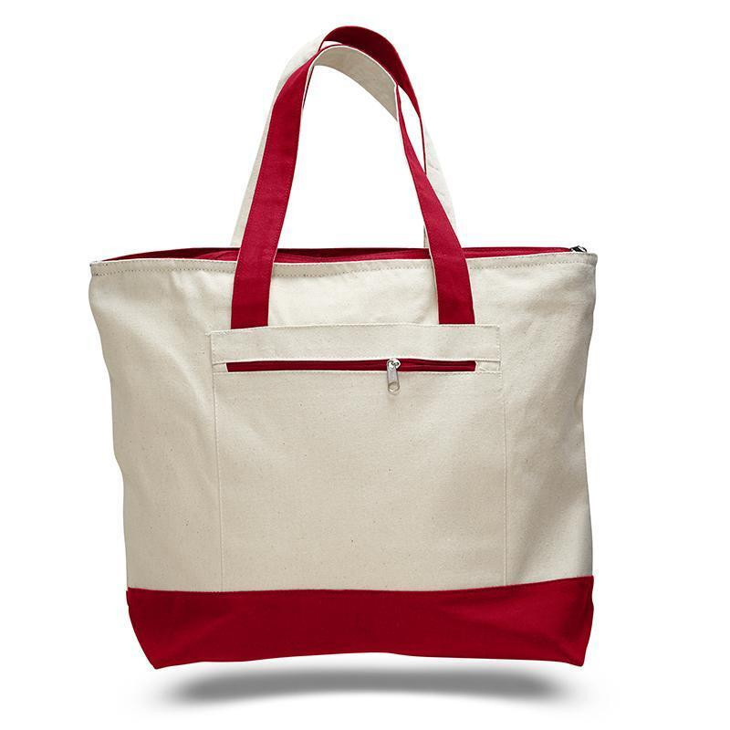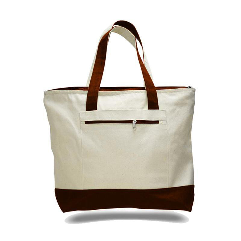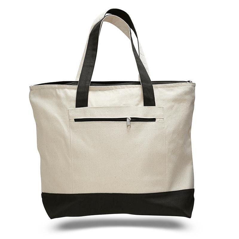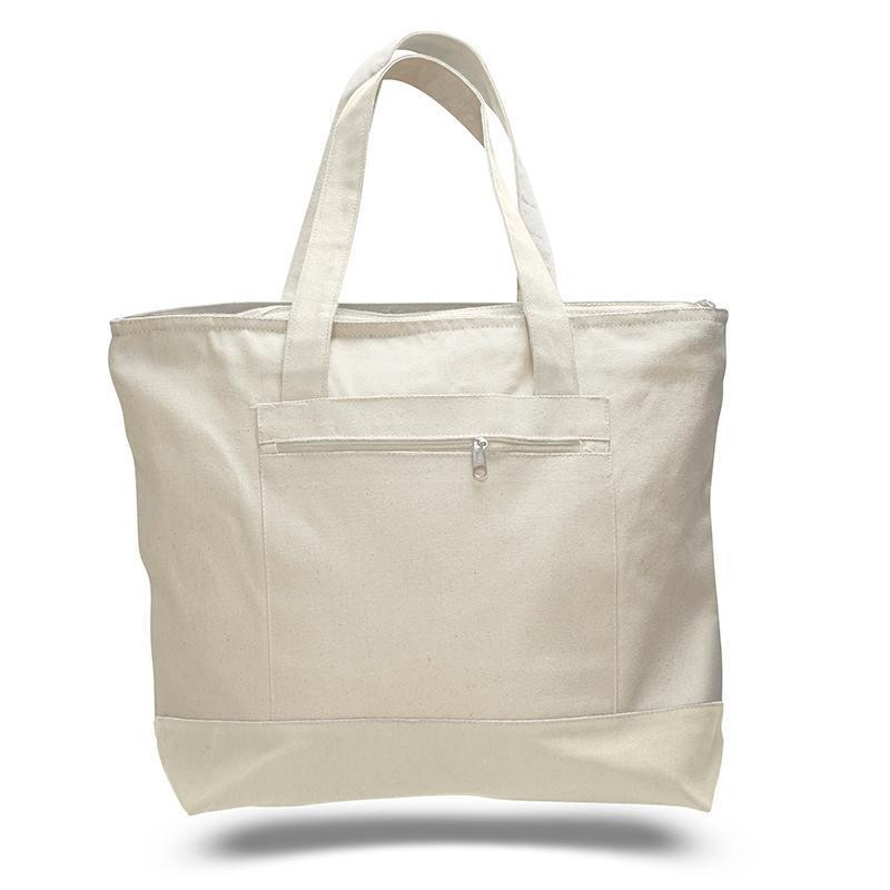 12 Oz. Cotton Canvas zippered shopping tote w/22" handle and inside pocket. Gusset.