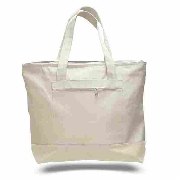 12 Oz. Cotton Canvas zippered shopping tote w/22" handle and inside pocket. Gusset.