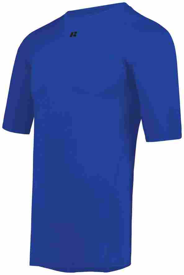 Give it your all in the Coolcore® Half Sleeve Compression Tee from Russell Athletic®. This compression tee features Xtreme compression cloth with Coolcore® technology. Coolcore® is engineered to distribute moisture quickly throughout the garment. As the moisture spreads it will dry faster and keeps you cool and comfortable.