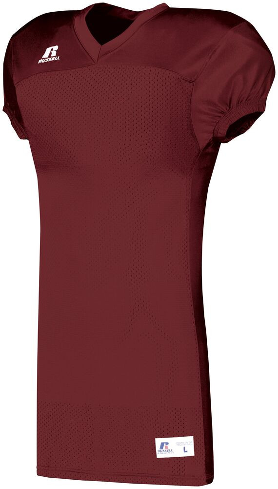Strength and comfort come together in the Russell Athletic Solid Jersey With Side Inserts. 93 Cloth mesh is tough and breathable, and its skill cut 73 Cloth sleeves give this football jersey complete pad coverage.