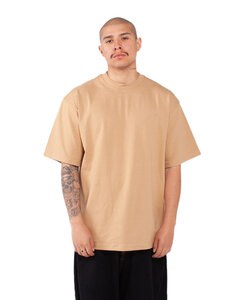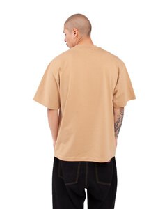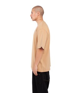 7.5 oz., 100% USA cotton, 16 singles; Heather Grey is 90% USA cotton/10% polyester; Charcoal Grey is 50% USA cotton/50% polyester; 2% lycra neck rib; Shoulder-to-shoulder neck tape and double-needle stitched neck; 1" double-needle stitched sleeve and bottome hems; 1" stretch-proof neck collar with satin/woven label; Heavy-duty knitting; Forward-thrusted shoulder seam for comfortable neck fit; Oversized/Relaxed with slight drop shoulder streetwear fit; Quarter-turned to eliminate center crease
