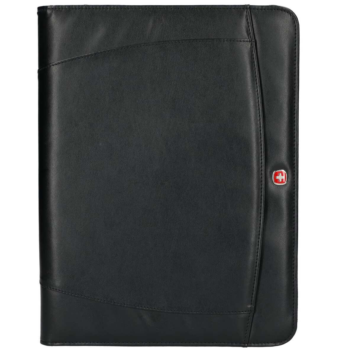 The Wenger Recycled Zippered Padfolio features a recycled PU cover material and 30 pages of recycled white lined paper. Interior includes gusset pocket, business card pockets elastic loops and pen loop. Includes white recycled gift box.
